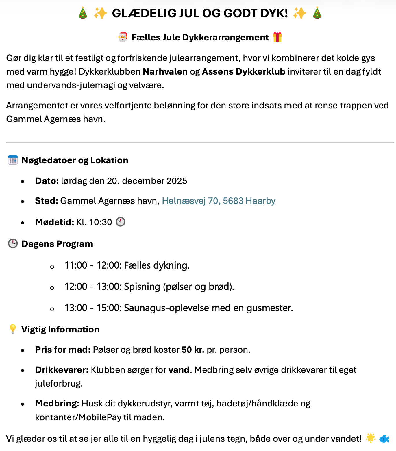 Fælles Jule Dykkerarrangement